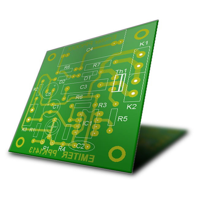 Плочка со печатено коло (ППК) за електронската конструкција "Парафазна тон-контрола" опишана во Емитер број 7-8/2007. Плочката е нагрзиена но неиздупчена.